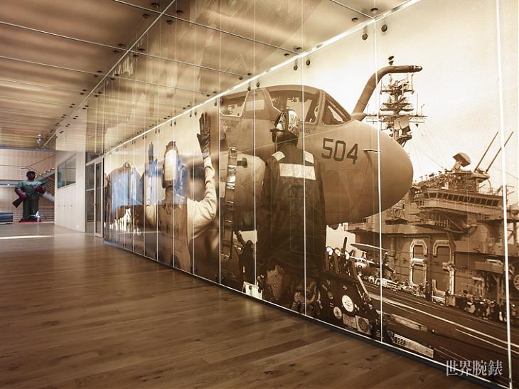 ▲1931年,百年灵推出了设置在飞机仪表板上的计时器,其后更为二次大战战斗机提供计时装备,与航空界紧密连繫,在百年灵精密时计中心内的走廊,便以此一基因点出品牌于空中的专业。
