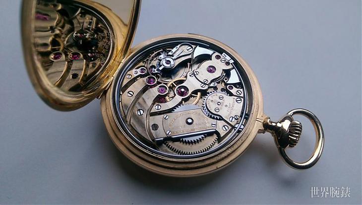 这是一只高级的PP标准型叁问怀表,高档次的擒纵结构,31石、8方位校准,双层蓝钢游丝,有平衡装置的鬍鬚型擒纵叉。另外,表壳与珐琅面盘都很完整,经维修后的报时响度,音质与节奏都不错。