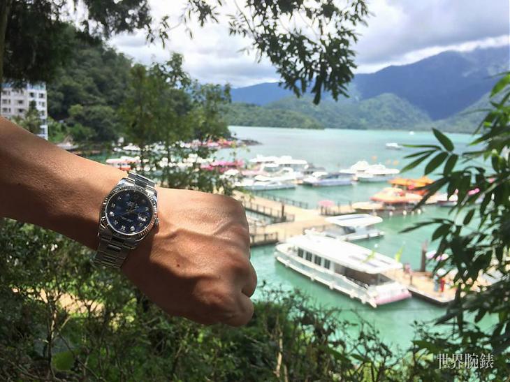 蔚蓝的表,翡翠绿的潭水,黝黑的手腕;湖光山色,白云悠情;在这属于熟表与幸福的国度。
