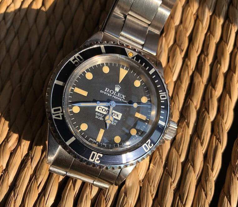 当然余文乐也并非只一味追求身价惊人的稀奇藏品,他还是有些相对「平易近人」老劳,例如这款海使Ref.1665并非什麼超级难入手的怪物,两排红字在这款身上被改成了白色,大概是1970年代末期的产品,它同样有着品牌过往顶尖深潜机能的高标,可见余文乐挑表有一套自己的哲学,并非盲从或跟风。