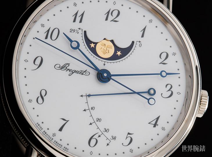 承袭自18世纪的歷史经典,表现在表款上的细节非常多,譬如位于十二点鐘位置的月相盘,其上的月亮与星星皆是採用纯金雕刻之,而大明火珐琅面盘因为制作繁琐、成本高昂,因此常见于高级腕表身上,尤其是具有浓厚歷史底蕴的品牌,非常喜欢使用大明火珐琅作为衬托古典风采的设计,因为大明火珐琅所特有的内敛质地相当雅致,在阳光照射下并不反光,而是改以醇厚的乳白质感彰显古典风格,这些自18世纪起就已经定义的细节,在当今宝璣的时计中更多了一些一般人可能没发现的细节,譬如位于叁点鐘位置其实有宝璣式隐藏签名,这种防偽设计也是宝璣独家开发,以此证明自身身价。