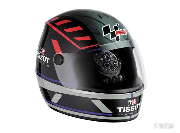▲与天梭其他系列或者其他表厂作品比较,T-Race MotoGP系列的表盒都显得很有自己风格,安全帽式的造型配色会随表款本身的设计而有变化,例如本款的黑蓝配色就沿用到表盒外装上。