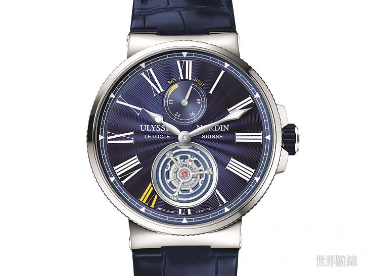 ▲不锈钢材质/UN-128 自动上鍊机芯/时、分显示/陀飞轮装置/动力储存显示/蓝宝石水晶镜面、透明底盖/防水100米/表径43mm
