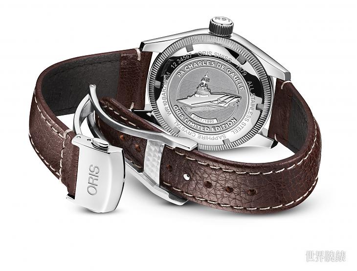 ▲PA de Gaulle Oris限量表是与舰上官员合作设计的一款腕表,它的表冠上刻"R91",这是航空母舰识别号码,同时也出现在舰上。