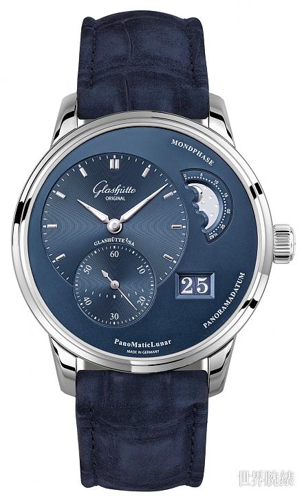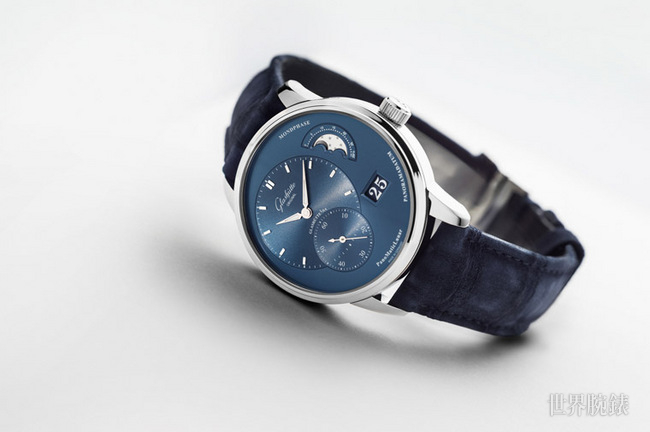 ▲格拉苏蒂原创的偏心月相表以黄金比例打造出大气优雅的面盘,沉稳的深蓝色在炎炎夏日更是最好的一道风景。