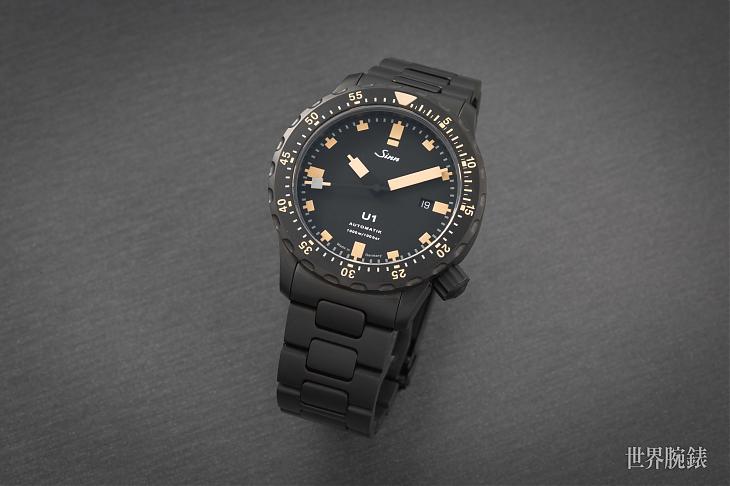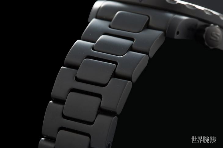 U1原本已经採用了另外经过专利Tegiment泰级处理的潜艇用钢材,硬度高达HV1,500,再镀上一层PVD虽然有可能更强化它的表面,不过这裡这麼做的目的主要应该还是在于着色。表款的PVD採用了雾面消光,符合专业器材的形象,搭配的鍊带使用了跟表壳同样的处理,整只黑得令人印象深刻,不过以笔者个人偏好,选择胶带款或是自行换装NATO带应该也有不错的效果。