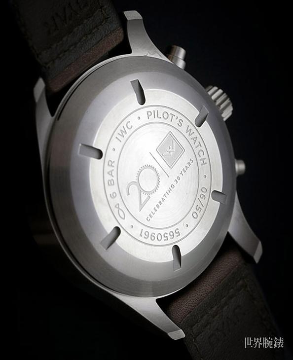 ▲表款实底盖下装有软铁内壳以提升抗磁性能,至于底盖上的刻印图腾则从原本的飞机腾案改为与「庆祝20週年」相关的图案与文字。