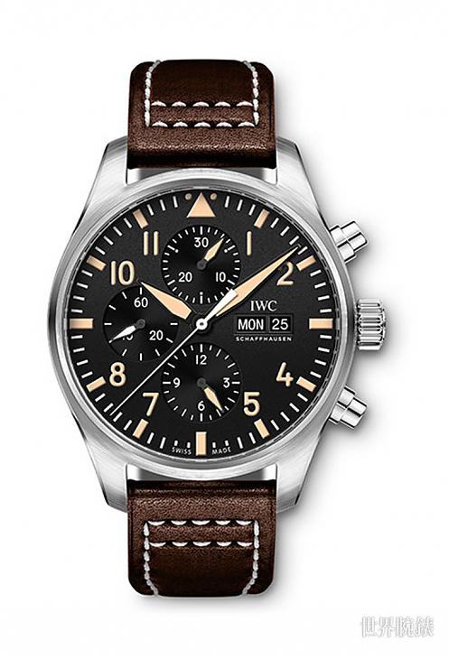 这款澳洲限定版採用不锈钢表壳,与一般版同样是43mm表径,至于造型上比较明显的差异在于限定版的时标与指针涂覆的夜光涂料乃是米黄色(一般版则是纯白色),同时九点方向小秒盘指针也从红色改成白色,使得中央计时秒针与小秒针两根针都有别于其他指针的米黄色,阅读起来更能清楚分辨。另外IWC这次依旧为特别版配置了SANTONI皮表带,改为棕色小牛皮表带后,搭配面盘的米黄指针与时标,整体看起来别具一股怀旧风格。