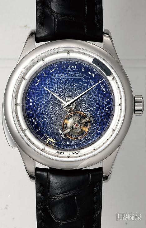 呈现北半球上方夜空的面盘,深邃的色泽与细腻无比的机械雕花令人醉心,不仅如此,积家特别加入飞行陀飞轮装置,同时为品牌中首款公转陀飞轮,当陀飞轮随着面盘「一天」公转一圈,搭配北半球星空图的面盘,意谓着盘上的星星也走完了一天。值得注意的是,这裡所定义的一天并非平时所用的24小时,而是慢了4分鐘的恆星日,而恆星日不以太阳为基准,而是以其他恆星为参照,而一旁小小太阳标誌,才是指示一般太阳日的24小时时标。并且积家悉心描绘面盘上星象名称与位置,搭配外缘月份与对应星座符号,可掌握一年中任何时间的星座位置。