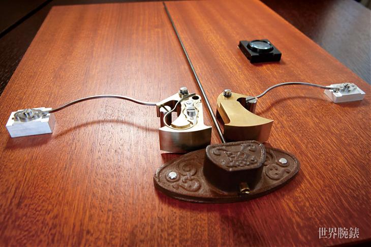 技术固然是积家强项,但积家过去除了闹铃、叁问甚至回溯至怀表时代,却尚未攻佔大自鸣技术堡垒,因此才会耗费五年心血于2009年正式推出品牌首款大自鸣腕表。对积家而言,不出则已,一鸣就要惊人,因此在音质表现、复杂度与报时结构都有所突破。考量到过去大自鸣机械结构从报时齿轮到音锤动力传递的耗损甚鉅,因此品牌借镜古代武器投石机的设计,如图所示运用两个钢材游丝分别固定音锤尾端与本体,并加上一条螺旋游丝,让报时齿轮敲击音簧时能提高动能传递的效能,发展出所谓的Trébuchet Hammer(投石机结构,天平音锤),让音锤更具力量兼顾音量与音质,并同时延长报刻音段,可达六段、24个音符。
