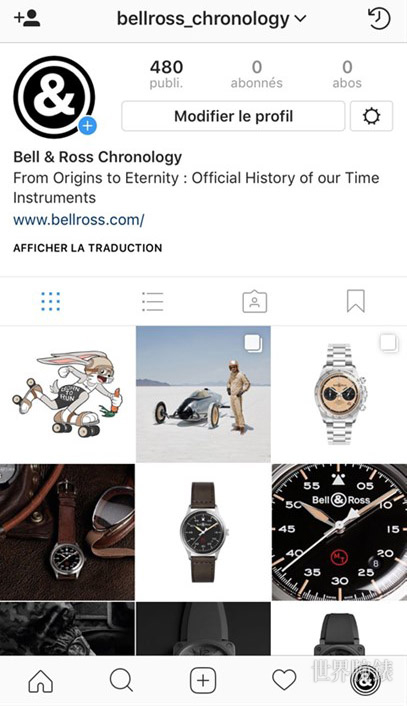 @bellross_chronology专页与2012年啟用的@bellrosswatches专页可以互为补充,因为后者主要上载与品牌最新消息有关的活动报导、图片及直播影片等。Bruno Belamich指出:「这两个专页相辅相承,新专页的重点是与大家分享品牌眼中完美的BELL & ROSS形象,并以时间顺序形式介绍品牌的腕表系列。」