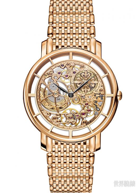 18K玫瑰金材质/240 SQU自动上鍊机芯/时、分显示/蓝宝石水晶镜面、透明底盖/防水30米/表径39mm/参考价:NT$ 3,002,000