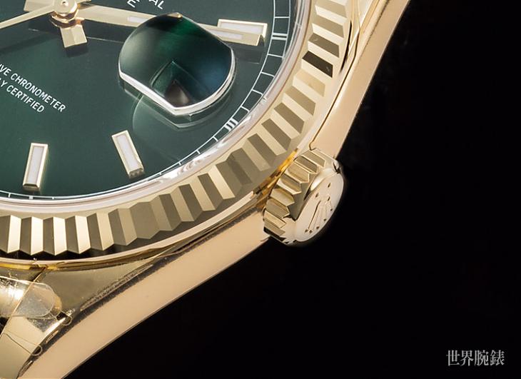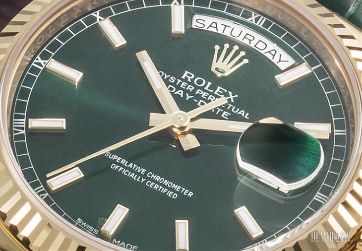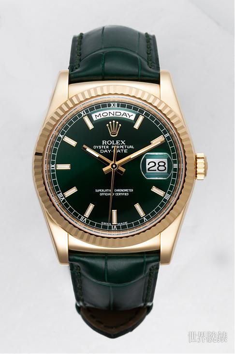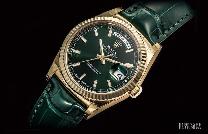 儘管不锈钢运动表是买劳力士的大宗,不过长久以来贵金属(有些还有镶钻)在品牌中仍然是重要的销售战力,而Day-Date更是只做贵金属款式,地位跟一般的运动钢表不可相提并论。这系列只运用贵金属材质、这款又具有代表品牌的绿色面盘、背后的故事渊源等附加价值,也是劳皇旗下经典性的代表之一。