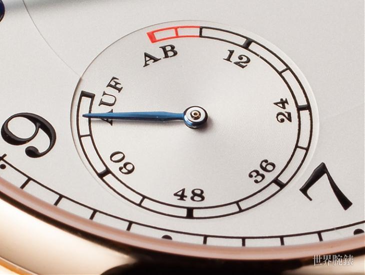 ▲1815 Up/Down具备3天动储显示,其中最后6小时的刻度以红色方格显示,以提示用家主发条将近完全鬆开(AB),而相对的"AUF"则代表完全上鍊的状况。