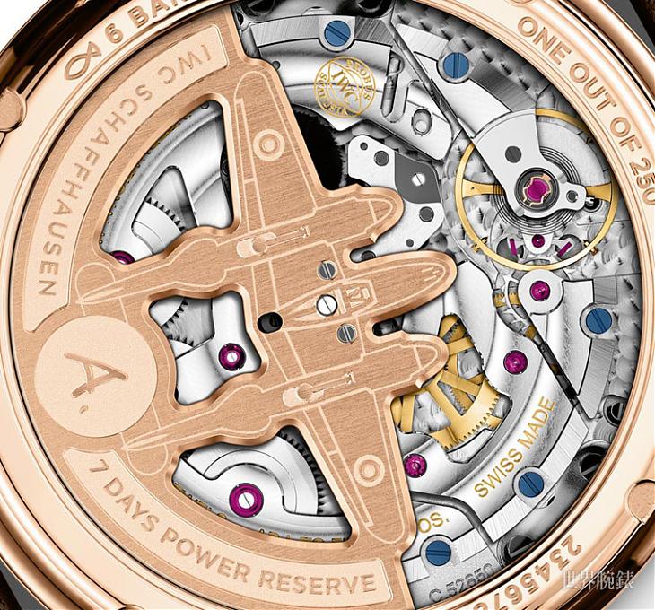 大型飞行员年历腕表「圣艾修伯里」特别版搭载的也同样是52850机芯,机芯内部拥有IWC着名的比勒顿上鍊系统,该系统近期有个小升级就是部分零件换成了陶瓷材质,更有助于提升机芯的耐用度。此外表款身为特别版的重点也反映在鏤空自动盘的设计上,当年圣艾修伯里因为执行一项任务而消失所驾驶的P-38双胴战机成为与他最深刻的连结,因此IWC将之内化进K金自动盘的外观中,呼应其仅限量250只的珍贵价值。
