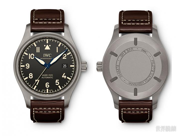 而马克十八飞行员传承腕表是IWC首次推出的一款搭载鈦金属表壳的马克十八飞行员腕表:鈦金属表壳,搭配黑色面盘,蓝色指针覆有夜光涂层(型号:IW327006)。前面介绍叁款腕表均搭配棕色小牛皮表带,并配备经典的IWC飞行员腕表工艺:软铁内壳保护机芯免受磁场效应影响,并稳固装配可抵受机舱内骤降气压的玻璃表镜。