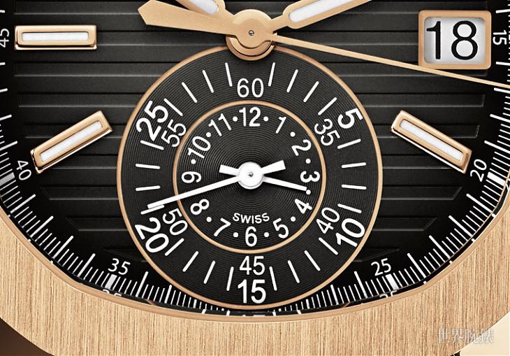 在百达翡丽Nautilus系列现有产品中,大叁针日期的款式较为普遍,相对下因为复杂功能的表款稀少,加以品牌原本产量就相当有限,因此一有功能款推出就势必获得市场高度瞩目,甚至曾经因为有兴趣的藏家过于踊跃,造成私底下超定价竞标的情况。而5980则为少数复杂功能中的一款,其搭载28-520系机芯的计时码表功能,中央秒针乃是走时与计时共用,省略了计时常见的小秒盘配置,因此啟动计时的当下,秒针就会马上飞返归零开始计时,是近代第一枚具飞返计时功能的机芯;另外同轴的60分鐘积分与12小时积时盘,只在6点鐘位置安排了一个盘面便能统筹,让佩戴者大可屏除计时码表繁多盘面的刻板印象,透过5980就足够欣赏到最精简的面貌。