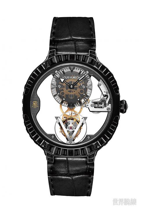 ▲作为路易威登第一只通过日内瓦印记的表款,2017年品牌为这只表款表壳镶上黑钻,换上华丽的深色新装后的表款幻化崭新风格。