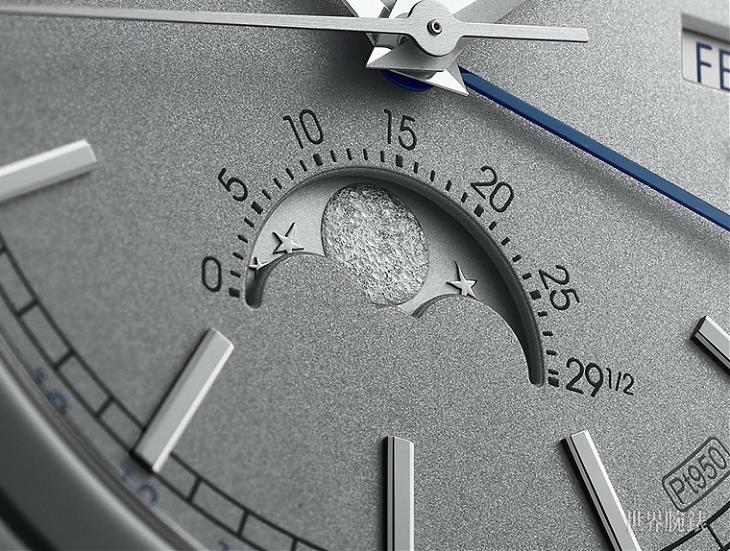 ▲呼应铂金系列的本色,表款连月相显示转盘也一併使用铂金制作,有别于传统的设计让月相显示变得低调中更显奢华。