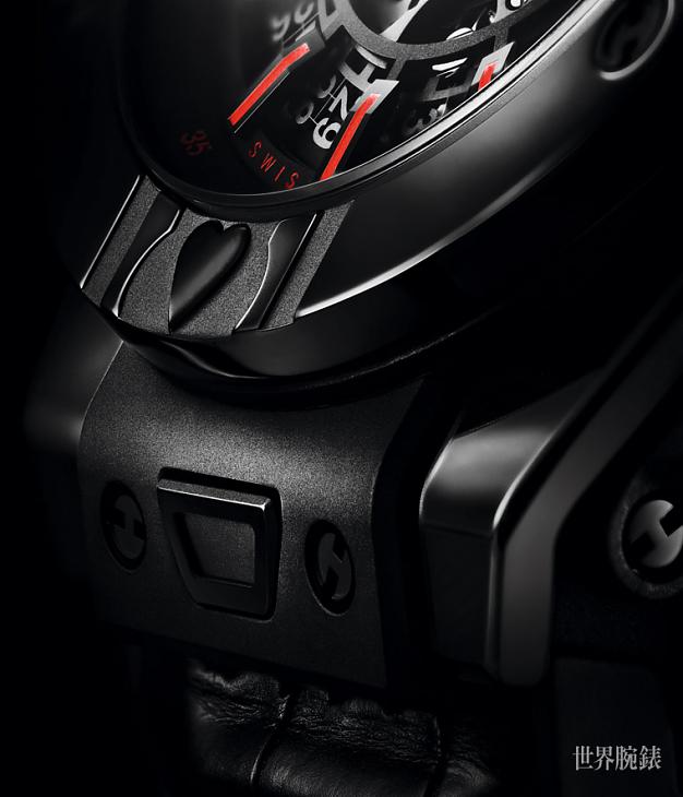 黑色陶瓷材质/HUB 1242自动上鍊机芯/时、分、小秒、日期显示/计时码表功能/蓝宝石水晶镜面、透明底盖/防水100米/表径45mm/限量188只