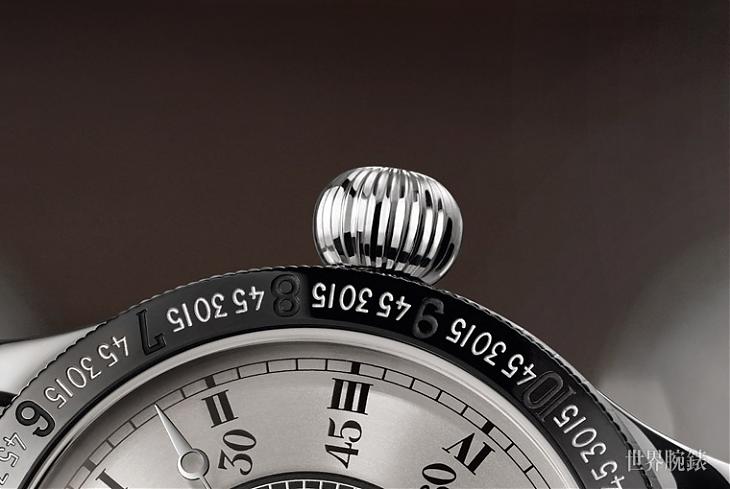 ▲沿袭第一代林白时间角度腕表的洋葱形大表冠,飞行员即使佩戴手套也能顺利进行操作,此特徵也成为飞行表的经典元素。