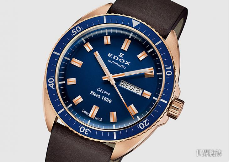 EDOX为了彰显这项沉船遗跡研究计划的前瞻性,特别推出全球限量200只Delfin系列Fleet 1650限量纪念腕表:43mm的表壳直径、200米防水,復刻造型的Delfin腕表,搭配与17世纪荷兰船隻配件相同材质的青铜表壳,极具时代意义与特色,当表壳与水气接触时,随着时间的缓慢流逝,将会出现微妙的色度变化,如同古董红木傢俱的自然包浆,彷彿光阴在表壳施展了魔法。
