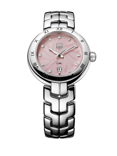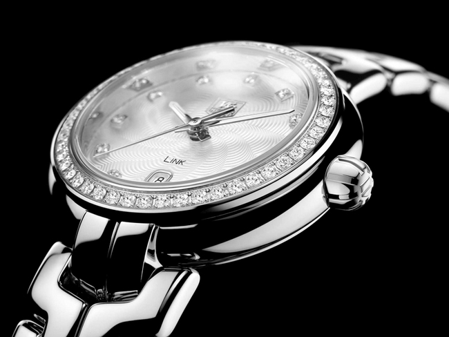 此次TAG HEUER将摩登优雅与女性魅力詮释融合于New Link Lady手表的方寸之间,圆形表壳精致细腻,极具代表性的S形鍊节带来流动的线条美感,表面处有浅浅的同心纽索纹,如涟漪般拨动着女人心弦,每一个细节都充满巧思。New Link Lady全系列表径从29MM到34.5MM,面盘有黑面、珍珠母贝、粉红面及银白面,不同表面呈现了独特的万种风情,多样的选择让女性可以像选择配件一般,每天随着心情或服装自由搭配。而搭配自动机芯的机械表款也将于2013年初上市。