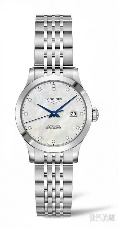 不锈钢材质/L592.4自动上鍊机芯/时、分、秒、日期显示/珍珠母贝面盘/时标镶钻/C.O.S.C.认证/蓝宝石水晶镜面/表径30mm/参考价:NT$ 75,700
