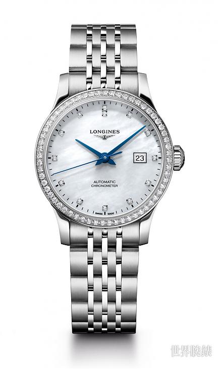 不锈钢材质/L592.4自动上鍊机芯/时、分、秒、日期显示/珍珠母贝面盘/表圈、时标镶钻/C.O.S.C.认证/蓝宝石水晶镜面/表径30mm/参考价:NT$ 147,300