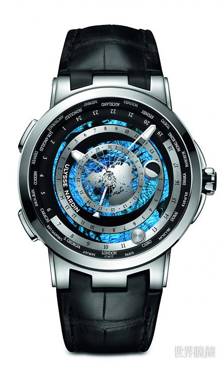 铂金材质/UN-106自动上鍊机芯/时、分、日期显示/世界时区显示/太阳、月亮与地球相对位置显示/月相显示/潮汐显示/蓝宝石水晶镜面、透明底盖/防水100米/表径46mm/限量100只/参考价:NT$ 3,186,800