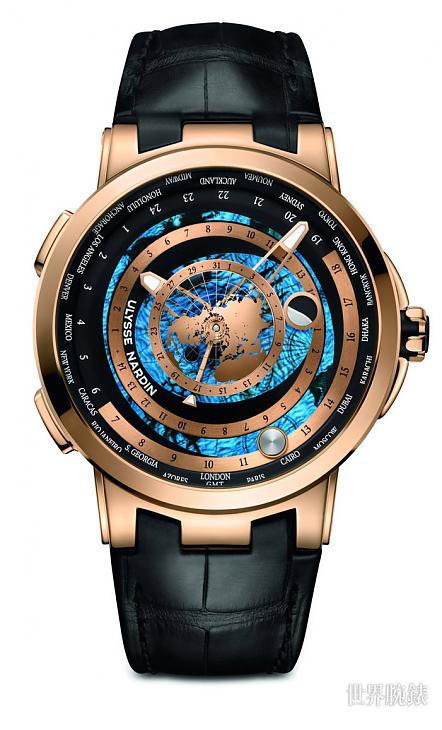 18K玫瑰金材质/UN-106自动上鍊机芯/时、分、日期显示/世界时区显示/太阳、月亮与地球相对位置显示/月相显示/潮汐显示/蓝宝石水晶镜面、透明底盖/防水100米/表径46mm/限量100只/参考价:NT$ 2,515,800
