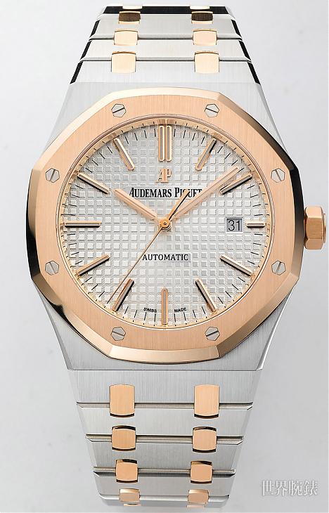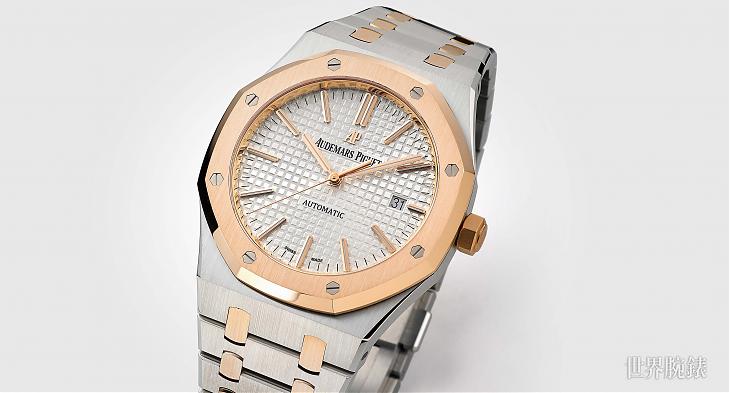 皇家橡树是很多人进军高级运动表的前几名选项,最经典的当然是不锈钢材质,但是如果觉得钢壳太常见、太普通,考虑直上贵金属材质会是比较能突显特别感的选择,但是通常贵金属的RO即使只是基本功能也会衝破百万大关,这时候半金款的存在就显得有它的必要性,双色调、带点贵重感,价格则是介于入门以及奢华之间,某种角度来看它可能反而是相对比较少人拥有的一款,对于追求个性化戴表风格的人来说,这款绝对有它的吸引力。
