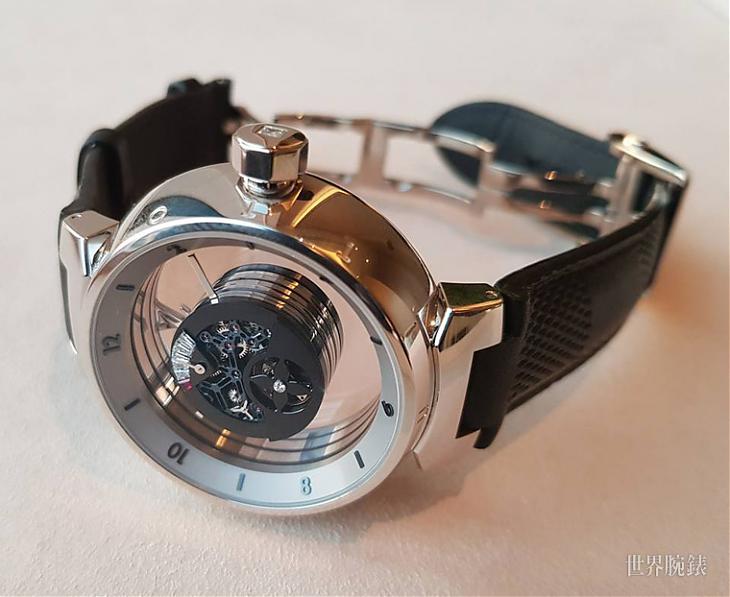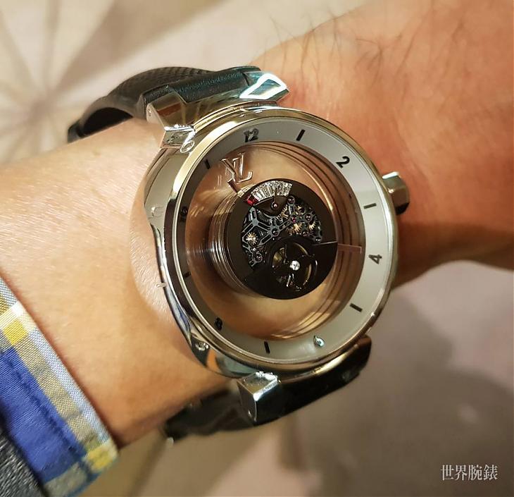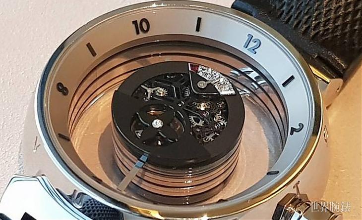 LV神祕表机芯是由3片蓝宝石水晶玻璃分别固定机芯与做为调时及调校时、分针使用。整枚机芯腾空于表壳中央(没有龙芯通机芯),非常特别的设计,堪称最牛的神祕表。