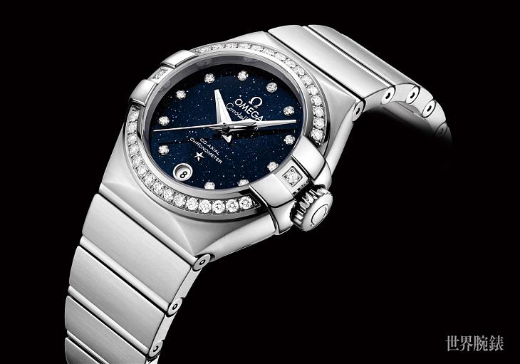 ▲欧米茄全新星座系列蓝色星空限量版女士腕表,以钻石作为小时刻度。