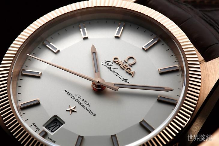 这款Globemaster是復刻五○年代星座旗下的Globemaster系列;关于Globemaster的由来在玩家间眾说纷紜,有种解释是当时星座要在北美上市时碰上了名称专利的问题因此才改换其名,这裡仅提供参考。撇开这些不提,新版的确是忠实重现了许多老星座的特徵,其中最讨喜的莫过于俗称八卦面的Pie-Pan式面盘和坑纹表圈;八卦面在早两年的星座復刻版上就已经用过了,不过当时的表圈两侧还有鹰爪护桥,比起来这款更接近五○年代星座的样貌,再加上也已经很少见于当代表款的坑纹表圈,即便不看抗磁性能这款都话题十足。