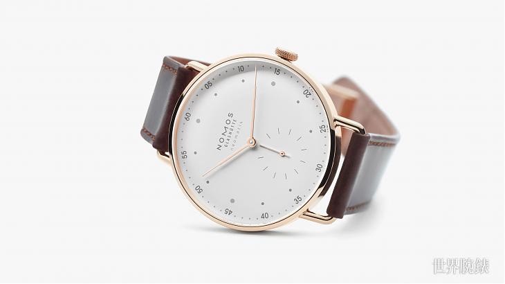 ▲METRO ROSE GOLD NEOMATIK 39的玫瑰金表壳可以视为NOMOS为METRO系列做的一次升级,效果也相当好。