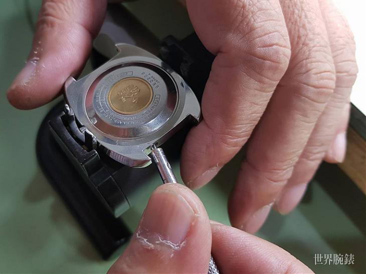 这只大概是1970年代生产,开啟底盖看机芯有点难度,搞不懂当年怎麼会有这样的设计。