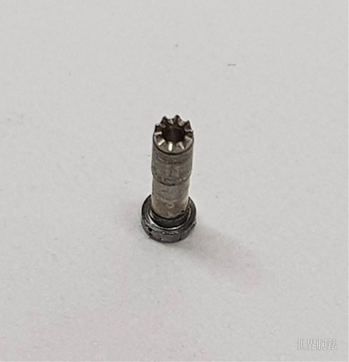 ▲表壳5~6的方向有一个洞孔,裡面有一个螺丝,可以连动机芯快慢夹,用来调校快慢。