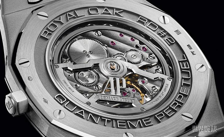 表款制作时所面临的挑战,是将叁层机芯重新设计整合为一层,使其更轻薄,同时重新组合排列各项功能,使其更符合人体工学,并提升效率与坚固程度。这套具有专利的系统,安装打破纪录2.89毫米的自动万年历机芯。重新设计的表壳厚度只有6.30毫米(比皇家橡树超薄Jumbo款薄约2毫米),因此皇家橡树RD#2是目前市场上最薄的自动上鍊万年历腕表。