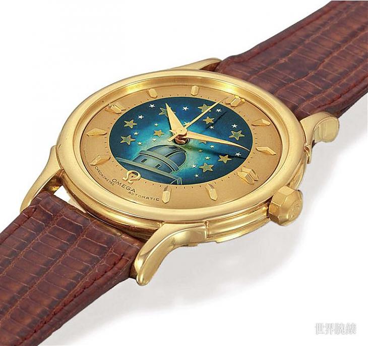 ▲图为1950年代OMEGA替某位中东客户特制的款式,由面盘上珐琅面制作的天文台图案,可知当时星座系列便已是品牌展示高精准度技术的旗舰作品。