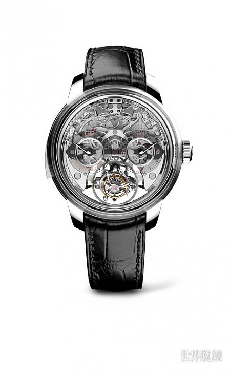 GP芝柏表以当代的高级复杂制表技术,打造全新的叁问报时叁轴陀飞轮腕表,是高级制表领域裡,科技和美学的重要革命。直径48毫米的表壳以鈦金属制造而成,其高密度的特质令打簧声效更佳。搭载手上鍊机芯,配备两大极具挑战性的复杂腕表功能,包括叁问报时,以及围绕叁轴同时转动的陀飞轮装置。