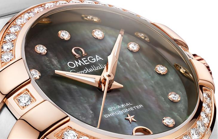 採用大溪地珍珠母贝面盘的星座女表有石英款和机械款两种,其中搭载石英机芯的少了中央秒针和日期显示;机械款搭载的是8520自动机芯,机芯不但使用了OMEGA欧米茄独门的同轴擒纵,除此之外还通过了C.O.S.C.天文台认证,精准度相当可靠。Swatch Group近年积极地为旗下品牌的产品换装硅游丝,OMEGA作为集团的主力更是最早导入硅材质零件的几间品牌之一,即便是女表也不例外;硅材质作为游丝在抗磁、轻量、不易受温度变化影响等等特性上可以说是相当优越的素材,装载在机芯中能够减少腕表因为姿势、气温、环境磁场等等外在因素所可能导致的运作异常,而且在前端组装和后期维修保养时也更有效率,这样的腕表佩戴起来即便不特别照护也能常保精准运作,某个程度上看来或许更适合应用在女表呢。