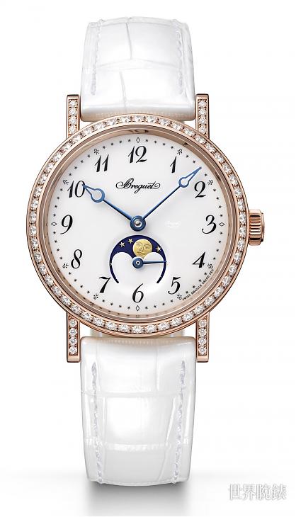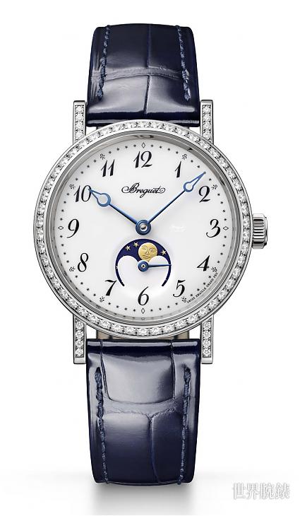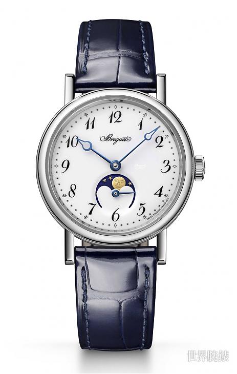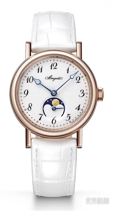 宝璣Classique 9087/9088月相腕表是Classique系列中专为女性设计的月相表款,表径为叁十毫米,较传统女表略大的尺寸,符合现代审美。月相盘中的拟人化月亮,也设计成明眸大眼与丰唇,彰显女性特色,与男款月相腕表上的形象截然不同。
