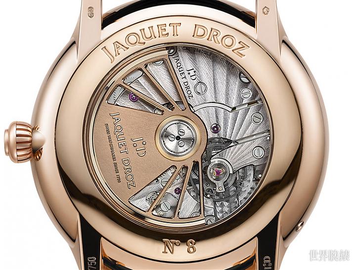 腕表搭载自动上鍊机芯,充分运用硅材质的天然属性。这种新近应用于制表业的物料具有优异的耐磨擦和耐腐蚀性。得益于雅克德罗研发的独特机制,月相大秒针显示真实的月行轨跡,意味着每122年才需调校一次。黑色珐琅月相大秒针恪守精致高雅的制表传承,面盘元素无不彰显卓雅风范。精密技术与优雅设计相得益彰。18K玫瑰金表壳搭配黑色捲边鱷鱼皮表带,6点鐘位置设指针式日期显示和天文月相显示,后者可通过8点鐘位置的按把进行调校。
