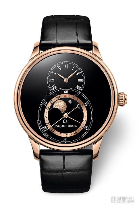 JAQUET DROZ雅克德罗黑色珐琅月相大秒针腕表(Grande Seconde Moon Black Enamel)追溯往日人类只能通过月亮记录月份变迁的远古传奇。