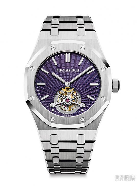 ▲皇家橡树超薄陀飞轮腕表2018年推出叁只改款新作,除了分别有叁种不同表壳材质款式,表款面盘也出现全新气象。