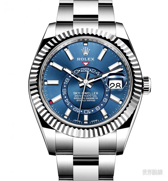 至于表款蓝色面盘上,可见24小时偏轴盘固定的红色倒叁角指标,用以指出佩戴者所选的第二地时间,方便读取居住或工作地区的参考时间。看一眼便可明确区分第二地时区的日与夜。表面配置长方形Chromalight夜光指针与鐘点标记,散发持久光芒,清晰易读。随着费德勒近日再次在澳网上出尽锋头,这款Sky-Dweller势必又会成为市场上讨论的焦点。