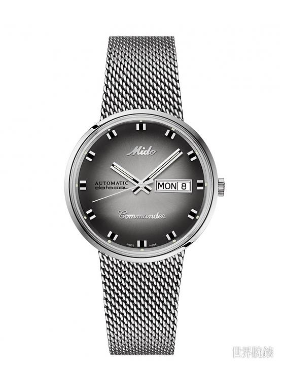1959年,MIDO美度表推出第一只Commander腕表,这个指标性的系列成为欢庆100週年的重点纪念。全新Commander Shade特别版设计保留第一代腕表最具辨识度的设计重点,圆润打磨处理、纯粹简约的表体线条创造开阔视觉感,压克力水晶面盘下搭配MIDO草写Logo,完美重现当年香榭系列问世的设计美感,37毫米的面盘上结合1979年的香榭系列的设计重点,使用渲染渐层的太阳放射饰纹,透过黑银双色渐层处理,展现渐进式的光影魅力,见证香榭系列的经典歷程。细致打磨镶嵌的造型时标搭配黑色漆面处理,设计灵感汲取于艾菲尔铁塔的高楼尖塔。钻石切割处理的时针、分针,以及表缘12圆点皆使用Super-LumiNova®涂料,确保在黑暗中清晰的阅读性,3点鐘方位搭载日期、星期显示窗,在微小细节中呼应法国艾菲尔铁塔的建筑特色。