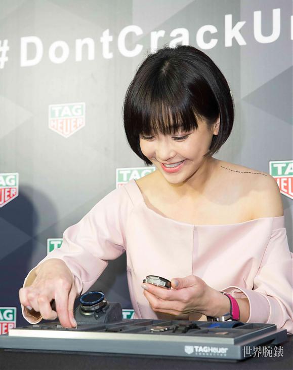 ▲谢欣颖化身时尚造型师,利用Connecte d Modular模组化配件,现场组装客制化智能腕表。
