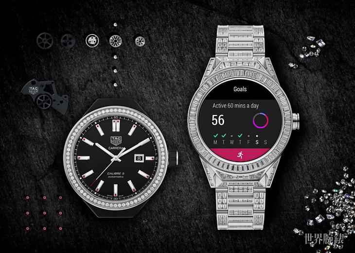 18K白金材质/Intel Cloverdale Peak处理器/8GB储存记忆体/1GB主记忆体/支援GPS、NFC无线感应支付、加速计、陀螺仪、倾斜检测感应器、麦克风、支援蓝牙、Wifi无线传输功/表圈、表耳镶钻约重6.58克拉,鍊带镶钻495颗,约重16.77克拉/相容于Android 4.4以上或 iOS 9以上版本/表径45mm/参考价:NT$ 6,030,000